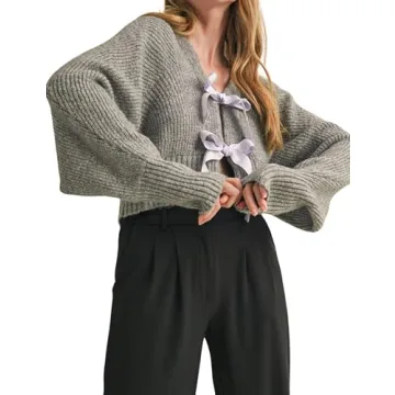 Show more Introducing the Esmeling Women’s Long Sleeve Crop Cardigan Sweater, a chic and stylish addition to your wardrobe that seamlessly blends comfort and elegance. Made from a soft, breathable knitted fabric, this sweater not only provides a gentle touch against your skin but also offers excellent elasticity to ensure a flattering fit. The unique V-neck design coupled with loose lantern sleeves creates a playful yet sophisticated silhouette, enhancing your femininity with every wear. Whether you're dressing up for a date or heading out for a casual day, this versatile cropped cardigan is the perfect choice.