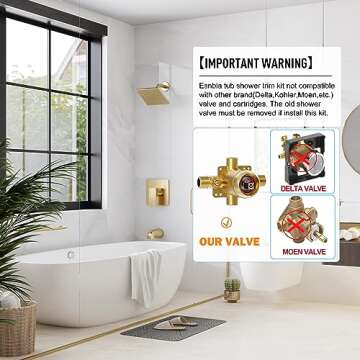 Esnbia Shower Tub Kit, Tub and Shower Faucet Set(Valve Included) with 6-Inch Rain Shower Head and Tub Spout, Single-Handle Tub and Shower Trim Kit,Brushed Gold