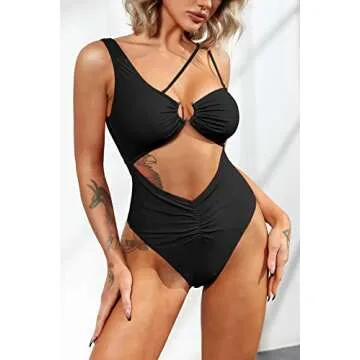 Show moreIntroducing the **ESONLAR Cutout One Piece Swimsuit**, meticulously designed for the modern woman who embraces her curves while not compromising on style. This sexy monokini features an eye-catching underboon ring detail that adds a unique flair, making it stand out on the beach or poolside. Constructed with high-quality materials, this swimsuit is not only flattering but also durable and supportive. Available in classic black, it combines elegance with a cheeky design, ensuring you feel confident and attractive. Enjoy the perfect blend of comfort and chicness, whether you're lounging under the sun or diving into the waves!
