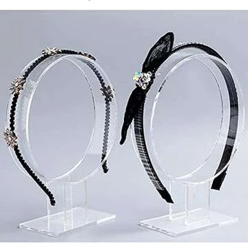 esowemsn 2pcs Clear Acrylic Headband Display Stand Headwear Holder Hairband Organizer Single Hair Hoop Holder Fixing Tools Accessories