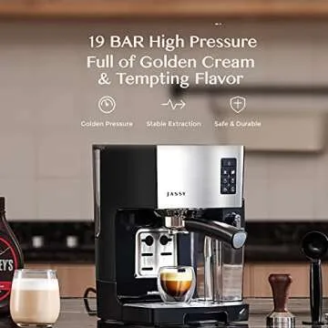 Espresso Coffee Machine Cappuccino Maker with 19 BAR Pump & Powerful Milk Tank for Home Barista Brewing,Multiple Functions for Espresso/Moka/Cappuccino,Self-Cleaning System,1250W(Silver)