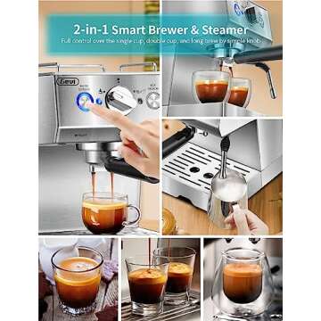Espresso Machines 15 Bar with Adjustable Milk Frother Wand Expresso Coffee Machine for Cappuccino, Latte, Mocha, Machiato, 1.5L Removable Water Tank, Double Temperature Control System, 1100W, Black