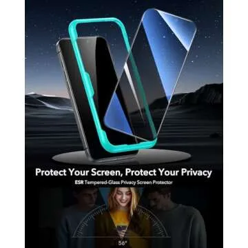 Show more Introducing the **ESR 3 Pack Privacy Screen Protector for iPhone 16 Pro**, an innovative solution combining top-tier protection with privacy features that meet the demands of your active lifestyle. Designed specifically for the iPhone 16 Pro, this tempered-glass screen protector offers robust military-grade defense against drops, bumps, and scratches, ensuring your phone screen remains as pristine as the day you bought it. The advanced privacy filter cleverly blocks visibility from side angles greater than 28°, keeping your secrets well-guarded from wandering eyes while maintaining full clarity for your viewing pleasure. Enjoy seamless Face ID support and pixel-perfect photo quality thanks to the high-transparency glass, making it not just a protector but an enhancer of your iPhone experience.