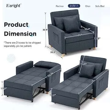 Esright Sleeper Chair, 3-1 Convertible Chair Bed Pull Out Single Sofa Bed with Adjustable Backrest, 2 Pillows, Side Pocket, Upgrade Memory Foam Armchair for Space Saving, Apartment, Office, Navy