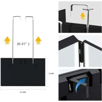 Essbhach 3 Way Mirror for Hair Cutting, 360 Barber Mirror for Women, Barber Supplies Haircut Mirror, Height Adjustable Hooks, Black Without LED