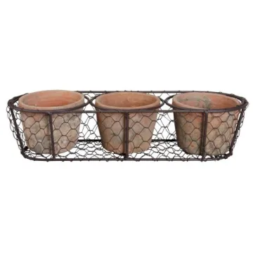 Esschert Design AT11 Aged Terracotta Flower Pots in Metal Basket