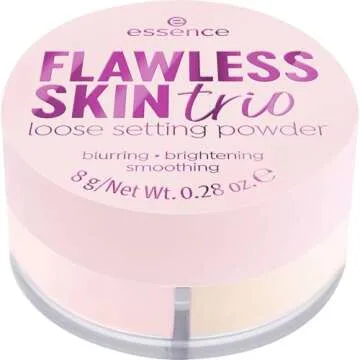 Show more The essence Flawless Skin Loose Setting Powder Trio is your ultimate companion for achieving a radiant, flawless complexion that lasts all day. This innovative 3-in-1 formula masterfully combines the power of color correction with the finesse of setting powder, ensuring that your makeup stays put while enhancing your natural beauty. Crafted with skin-loving ingredients, this loose setting powder is designed to be universally compatible with all skin tones and types, making it a must-have addition to your beauty routine.