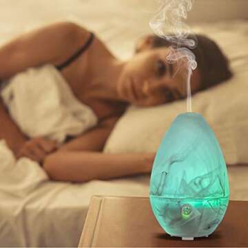 Essential oil diffuser, 120 ml Easter egg mist blue glass Aromatherapy diffuser, ultrasonic seven-color LED night lamp, guest room, indoor office, Yoga Hot spring.