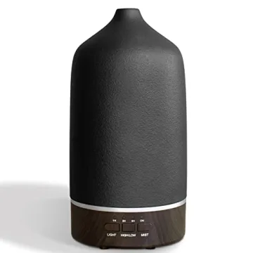 Essential Oil Diffuser Aromatherapy Humidifier - 300ML Ceramic Ultrasonic Infuser Quiet Aroma Air Defuser Vaporizer with 7 Lights & 2 Mist for Home Large Room Black