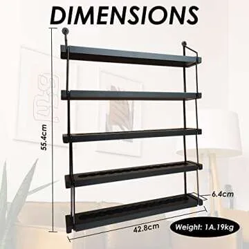 Essential Oil Rack, 5 Tier for 70 Bottles Holder Wall Mounted Essential Oil Rack Holder, Black Metal Display Shelves For Wall, Solid Wood, Nail Polish Organizer, Storage Shelf