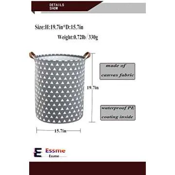 Essme Laundry Hamper,Collapsible Canvas Waterproof Storage Bin for Kids, Nursery Hamper,Gift Baskets,Home Organizer (Grey Triangles)