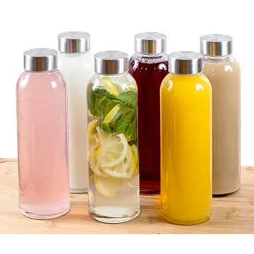 Estilo Glass Water Bottles 18 oz, Stainless Steel Cap - Case of 6