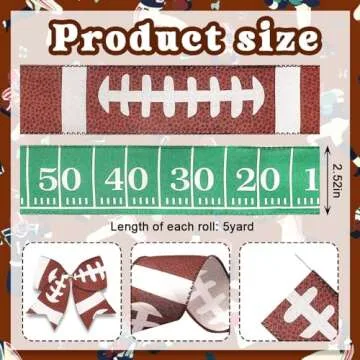 Estivaux 2 Rolls Football Ribbons for Crafting, Football Wired Edge Ribbon Green Brown Burlap Ribbon Bow Sports Rolls Ball Wired Ribbons for Gift Wrapping Sports Ball Game Sewing DIY Crafts Supplies