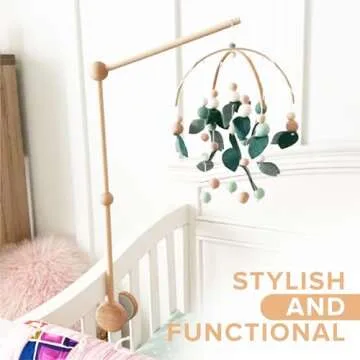 EstyFanZ Crib Mobile ARM - Rotating Wooden Mobile Arm for Crib 33-inch Baby Mobile Hanger Nursery Mobile Stand for Crib