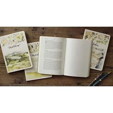 This unique journal set consists of individual books from the New Testament, allowing users to focus on one specific book at a time. It's perfect not only for personal study but also for sharing insights during group readings or family discussions. The beautiful watercolor artwork and elegant script titles enhance the aesthetic appeal, making it a true art piece for any home.