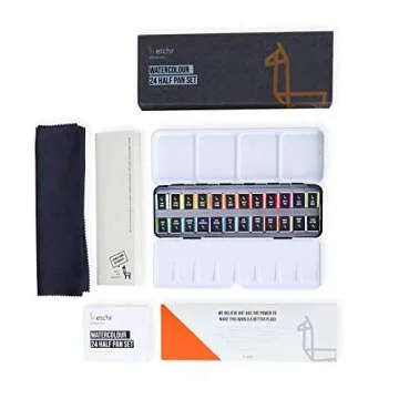 ETCHR 24 Watercolor Pan Set - Artist Quality Watercolor Half Pan Set for - Student Series Watercolor Travel Set - Bright Lightfast Watercolors