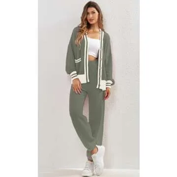 ETCYY NEW Women's 2 Piece Outfit Lounge Set Trendy Cardigan Sweater Pants Sets V Neck Button Pocket Knit Matching Loungewear