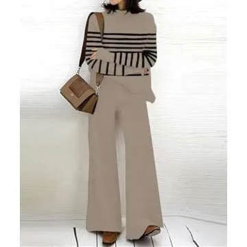 ETCYY NEW Womens Elegant Lounge Sets Knitted Sweatsuit Sets 2 Piece Outfits with Sweater Tops and Wide Leg Sweatpants