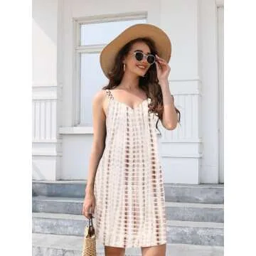 ETCYY Women's Summer Dresses 2025 Casual Sleeveless V Neck Loose Cover Up Beach Sundresses with Pockets(L.Stripe Brown)