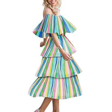 Show moreStep into summer with the stunning ETCYY Women's Tie-Dye Off The Shoulder Ruffles Summer Loose Casual Chiffon Long Party Beach Maxi Dress. This vibrant dress, made from lightweight chiffon, offers you incredible comfort while you shine in its beautiful pastel hues. Designed for versatility, the dress can help you effortlessly transition from beach walks to elegant evening parties. Its off the shoulder style enhances your silhouette, while the ruffles and pleated design add a whimsical charm. Perfectly tailored with a high waist that leads to an above-the-knee length, this dress ensures you stay cool and stylish during those hot summer days.