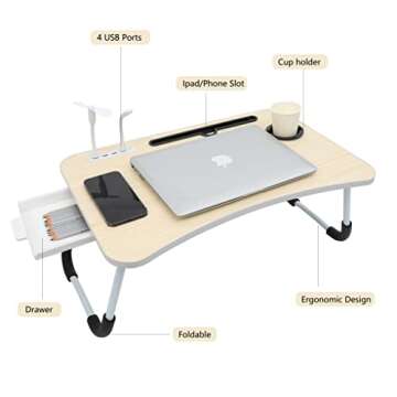 Eternal Wings Laptop Bed Desk,Portable Foldable Laptop Tray Table with USB Charge Port/Cup Holder/Storage Drawer,for Bed/Couch/Sofa Working, Reading (Wood Color)