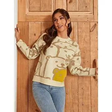 Eteviolet Womens Y2K Sweater Kawaii Vintage Long Sleeve Knit Oversized Pullover Jumper Cute Sweaters
