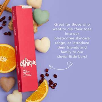 Show more Introducing the **Ethique Face Sampler**, your gateway to an eco-friendly skincare revolution! This set includes 5 expertly crafted mini solid face bars designed for all skin types, making it an ideal choice for skincare enthusiasts and those wanting to explore effective, sustainable skincare options. Each bar is vegan and cruelty-free, aligning with our commitment to protecting our planet and its inhabitants.