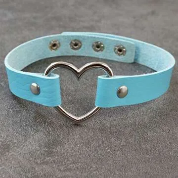 ETHOON Love Heart Choker PU Leather Choker Necklace Goth Choker Collar Chain Blue
