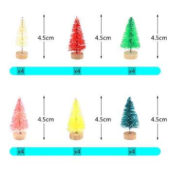 Etmact 24pcs Multicolor Mini Pine Trees Frosted Sisal Trees with Wood Base Bottle Brush Trees Plastic Winter Snow Ornaments Tabletop Trees for Crafting, Displaying and Decoration