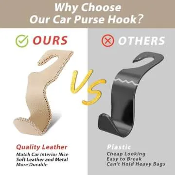 Etre Jeune Purse Hook for Car, Purse Holder Car Headrest Hooks Leather for Hanging Purses and Bags, 2 Pack Beige