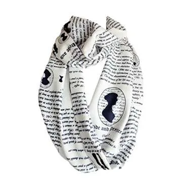 Etwoa Jane Austen Pride and Prejudice Book White Infinity Scarf Circle Loop Scarf