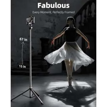 EUCOS Metal Phone Tripod Stand, 67" Tripod for Phone with Remote & Lightweight Camera Tripod Stand, Sturdy Extendable Cell Phone Tripod for iPhone/Android
