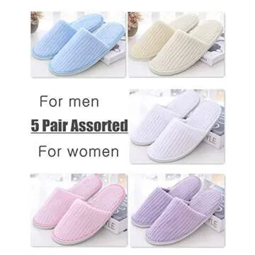 Eucoz 5 Pairs SPA Slippers - Assorted Colors, Closed Toe for All Occasions