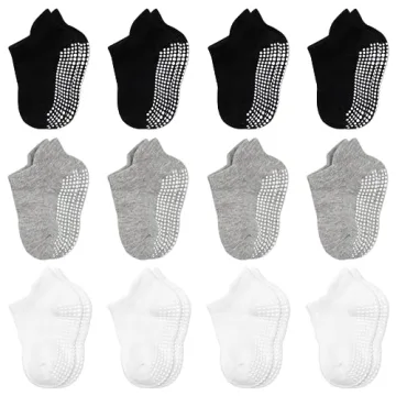 Show more If you are searching for a perfect gift that combines style, functionality, and safety for your little ones, look no further than our exquisite collection of non-slip baby socks. Designed with care, these socks provide a strong grip on the bottom that covers the whole foot, ensuring your crawling baby or toddler stays safe on smooth surfaces such as hardwood floors. The high-quality blend of premium cotton, polyester, and spandex offers a soft touch that is gentle on delicate skin, making them ideal for all-day wear.