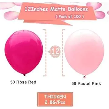 Show more Elevate your celebrations to a whole new level with the EUFARS Pink Party Balloons Pack. This fabulous collection features an impressive total of 100 thickened 12-inch latex balloons, divided into two delightful shades: 50 soft light pink and 50 vibrant hot pink. Whether you’re planning a birthday bash, a baby shower, a wedding reception, or a charming Valentine's Day event, these balloons serve as the perfect accessory to uplift any gathering with their dazzling hues and abundant volume.