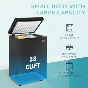 Meet the Euhomy 2.8 Cu.Ft Chest Freezer, the perfect addition to any home! Designed for efficiency and convenience, this mini freezer boasts a compact size of just 20.7"(W) x 17.5"(D) x 31.9"(H), ensuring it fits seamlessly into tight corners of kitchens, apartments, garages, or dorms. With a spacious internal capacity capable of holding approximately 26 lbs of beef or 38 lbs of fish, this unit is not just space-saving, but also productivity-enhancing, making it an essential tool for bulk...
