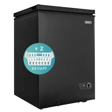 EUHOMY 3.5 Cu.Ft Chest Freezer with Removable Basket, Small Deep Freezer Adjustable 7 Thermostat, Quiet Mini Freezer Free-Standing Top Door, Energy Saving for Apartment/Garage/Basement/Dorm/Home,Black