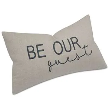 EURASIA DECOR Be Our Guest Embroidered Lumbar Decorative Accent Pillow Cover - Entryway, Guestroom, Living Room - 12x20 Inches, Linen