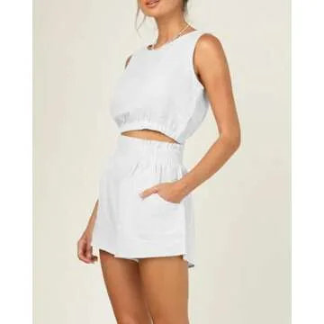 Eurivicy Women's 2 Piece Outfits Sleeveless Crop Tank Top and High Waist Pocketed Shorts Loose Summer 2pcs Short Sets