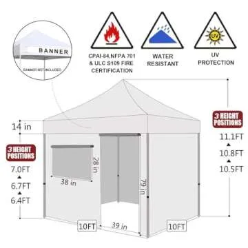 Eurmax USA 10'x10' Pop-up Canopy Tent Commercial Instant Canopies with 4 Removable Zipper End Side Walls and Roller Bag, Bonus 4 SandBags(White)