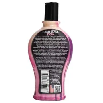 Show moreElevate your indoor tanning experience with the **European Gold Flash Black 2000X Indoor Tanning Lotion**. Designed to deliver a stunning bronzed glow, this luxurious lotion features **time-release DHA bronzers** that enhance and deepen your color gradually, leaving your skin with a radiant and sun-kissed appearance. The unique **Ultra-Dark Glow Matrix** ensures that your tan develops beautifully over time, providing a lasting allure that's bound to turn heads. Perfect for those seeking a rich, dark complexion, this indoor tanning lotion is a must-have for your beauty regimen.