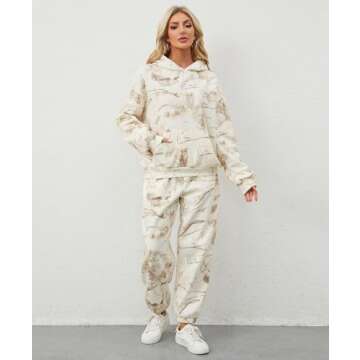 Eutten Camo Sweatsuits for Women Set 2 Piece Camo Hoodies Maple Leaf Print Oversized Sweatshirt Lounge Sets Fall Outfits