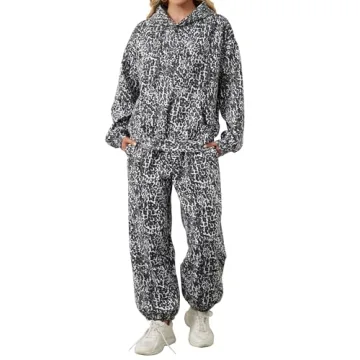 Show moreIntroducing the Eutten Leopard Print Sweatsuits for Women Set—a stylish and cozy two-piece loungewear set that elevates your comfort and fashion game simultaneously! Designed with a luxuriously soft cotton blend and a warming fleece lining, this oversized leopard hoodie and matching sweatpants embrace you in plush thickness, perfect for the chilly fall and winter months. The eye-catching cheetah print adds a vintage vibe to this urban outfit, making it ideal for those who want to stand out while feeling effortlessly chic.