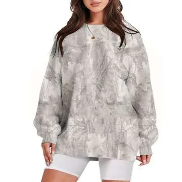 Eutten Womens Camo Sweatshirt Maple Leaf Print Oversized Camo Crewneck Sweatshirt Fleece Pullover Hoodies Long Sleeve