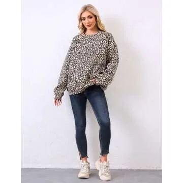 Eutten Womens Leopard Print Sweatshirt Cheetah Print Oversized Crewneck Graphic Sweatshirt Fleece Pullover Hoodie Long Sleeve