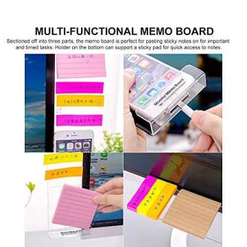 Eutuxia Monitor Memo Board with White Pen Holder, Acrylic Multifunction Computer Board for Memo Pad Phone Holder Clip for Sticky Notes [Left and Right Set + Pen Holder]