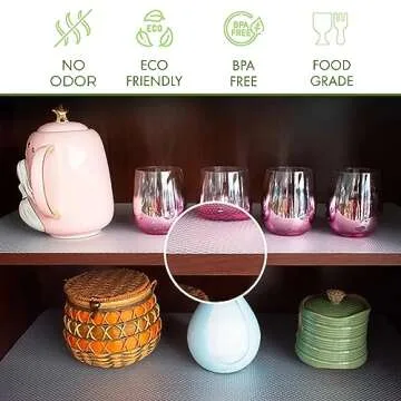 Show moreIntroducing the **EVALAND Non-Slip Shelf Liner**, your ultimate solution for kitchen organization and protection. Perfectly crafted in Turkey, this premium **17.7 inches x 33 feet** EVA liner offers exceptional durability and functionality. Made from high-quality, food-grade EVA material, it ensures safety in direct contact with your fruits and vegetables. Not only is it **BPA-free**, but it also boasts waterproof, dustproof, and oilproof features, effectively safeguarding your shelves, cabinets, and drawers from scratches, dirt, and damage.
