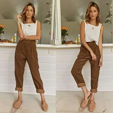 EVALESS Corduroy Pants for Women Fall Fashion 2024 Business Casual Work High Waisted Straight Leg Ankle Pants Loose Comfy Retro Cropped Trousers Pants with Pockets Winter Clothes Brown X-Large