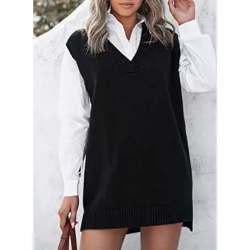 Show moreIntroducing the EVALESS Plus Size Sweater Vest, a fashionable addition to your autumn wardrobe that marries style and comfort beautifully. Crafted from skin-friendly, soft fabric, this sleeveless V-neck knitted sweater vest offers unparalleled breathability while ensuring an effortless fit. Its loose and casual design effortlessly complements all body shapes, making it a must-have for women seeking both comfort and elegance. Featuring a stunning cable-knit pattern on the front and a chic irregular hem, this piece is designed to enhance your silhouette while making you feel charming and confident. Embrace the fall season with a versatile top that pairs perfectly with blouses, shirts, or even turtlenecks for a layered look.