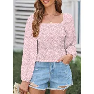EVALESS Square Neck Tops Puff Long Sleeve Blouses for Women Dressy Casual Spring Fashion 2024